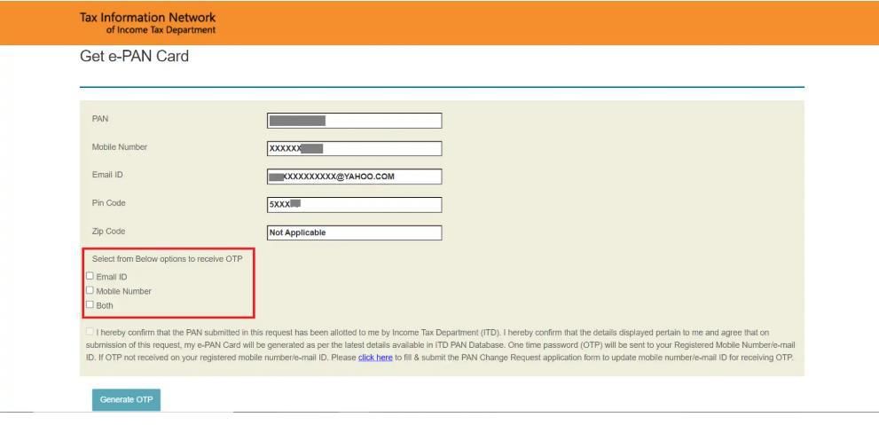4. Choose your preferred OTP delivery method (email, mobile, or both) and click Generate OTP.