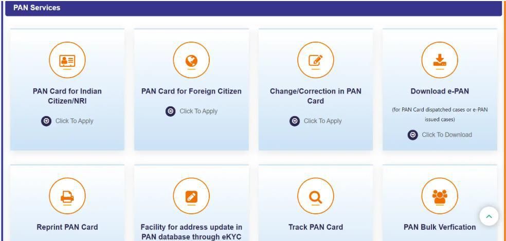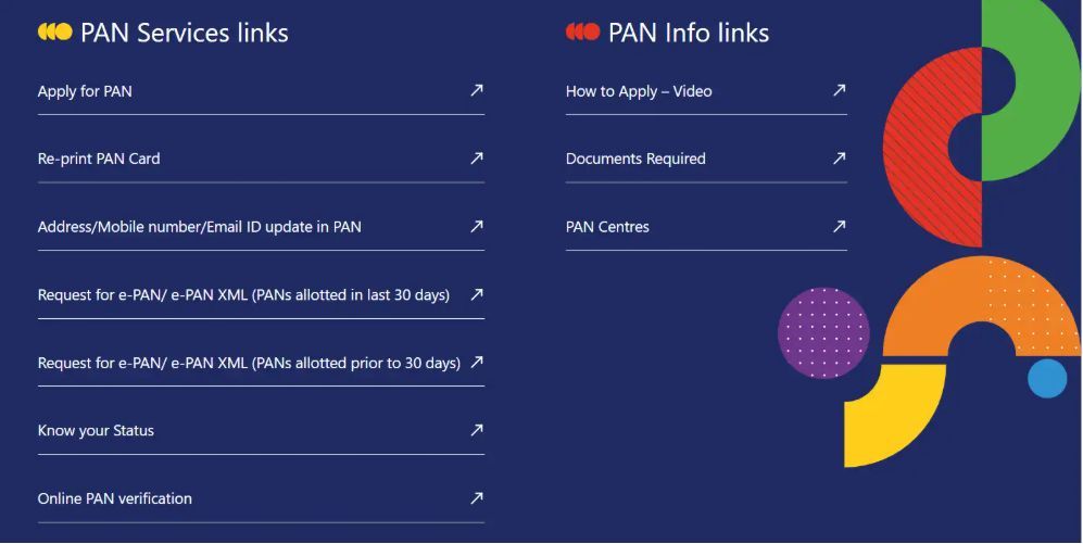 2. Scroll to ‘PAN Services Links’ and choose the applicable option: