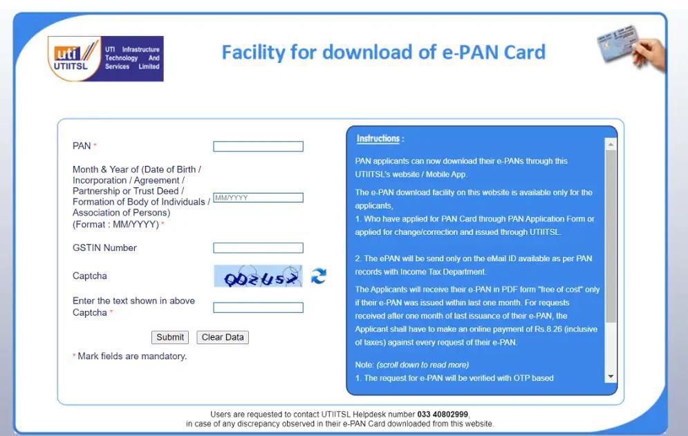 How to Download e-PAN from UTIITSL Portal